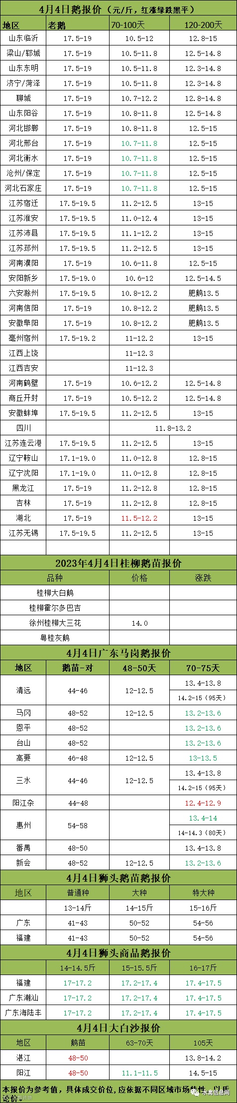 2023年4月04日各品种鹅苗价格