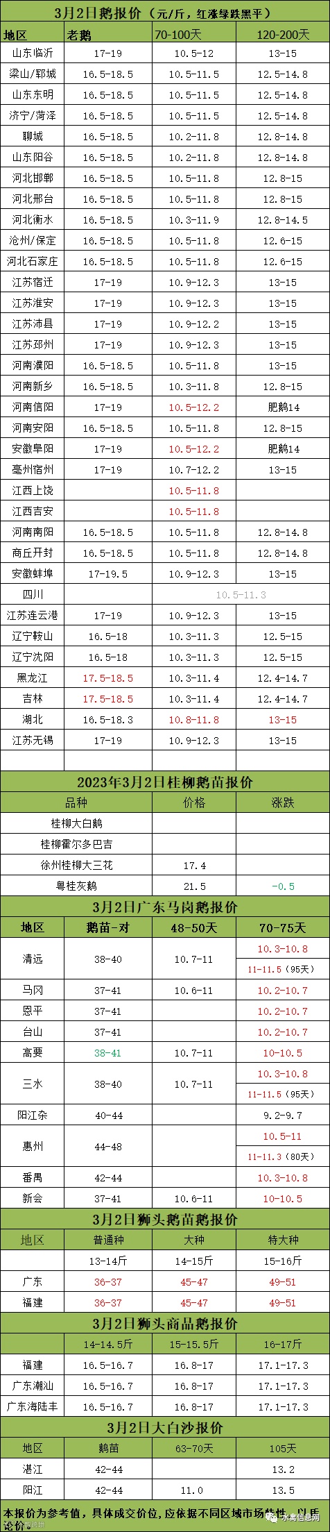 2023年3月2日各品种鹅苗价格