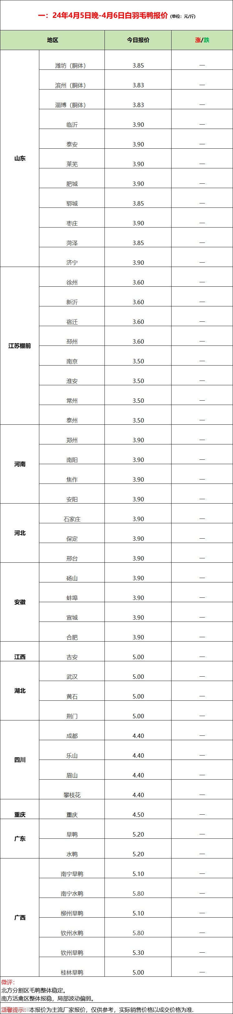 北方毛鸭报稳为主,屠宰以合同为主,对市场鸭支撑有限。南方活禽区报价弱稳,节后局部开始走弱。