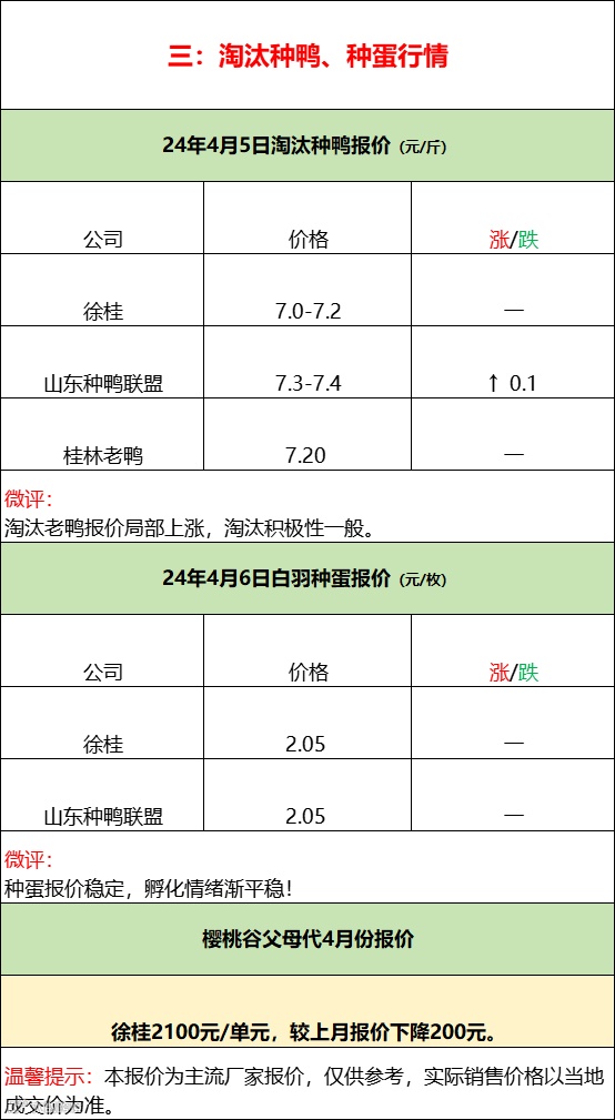 今日鸭苗报价涨后持稳,天气转暖补栏需求上升,但今年产能不小,供需博弈紧张。今日鸭苗计划正常。