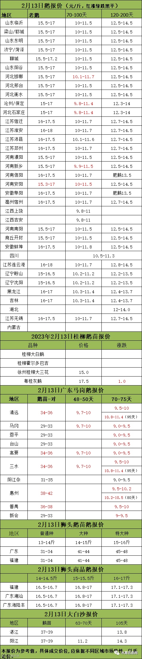 2023年2月13日各品种鹅苗价格