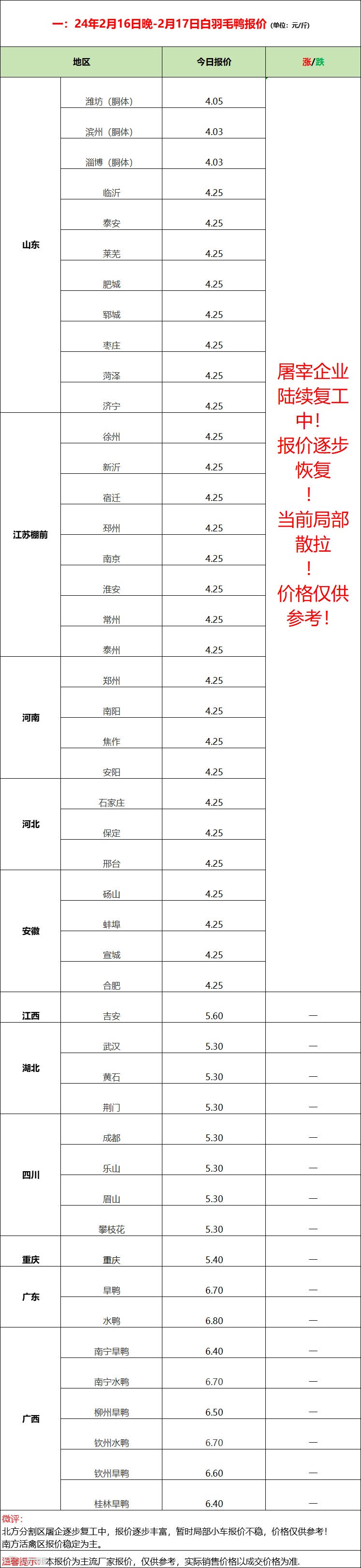 鸭苗连续拉高后,市场接受度差,计划迟缓,今日2次报价大幅下滑!供需博弈,年后陆续开工,苗价逐步寻找锚点。