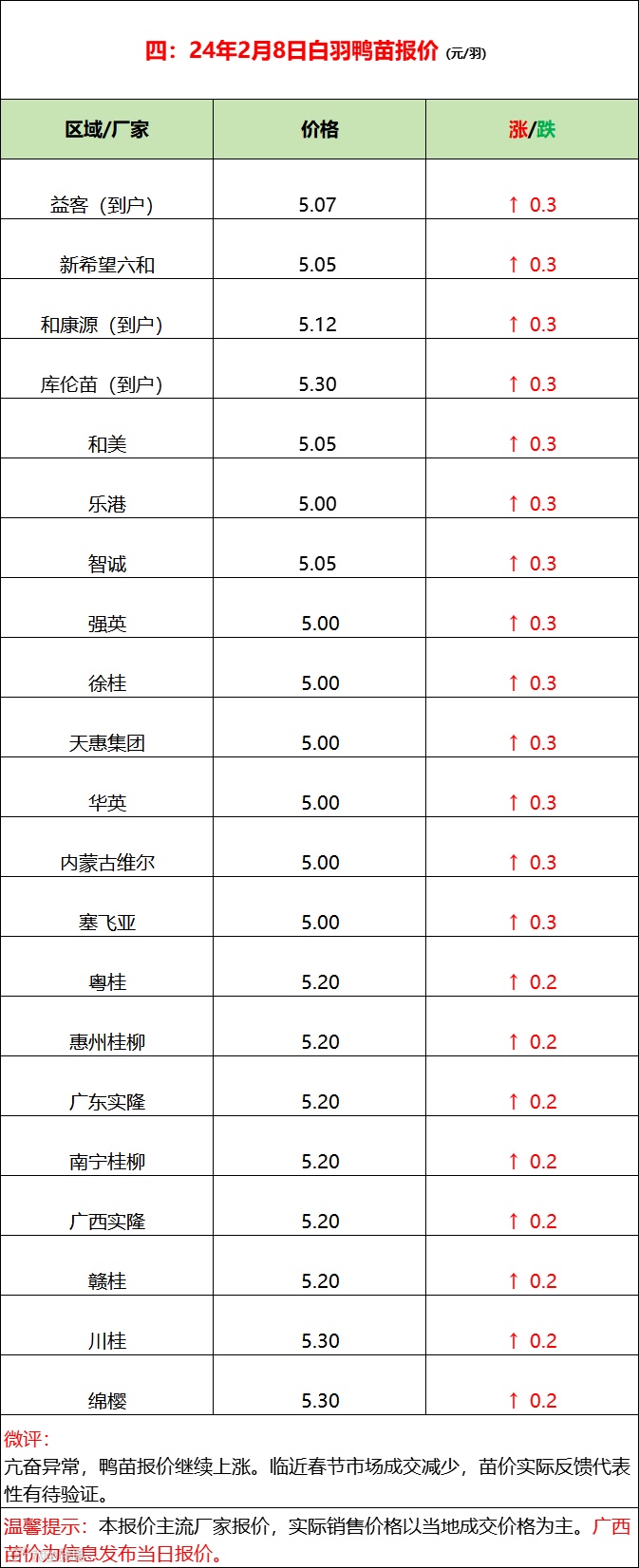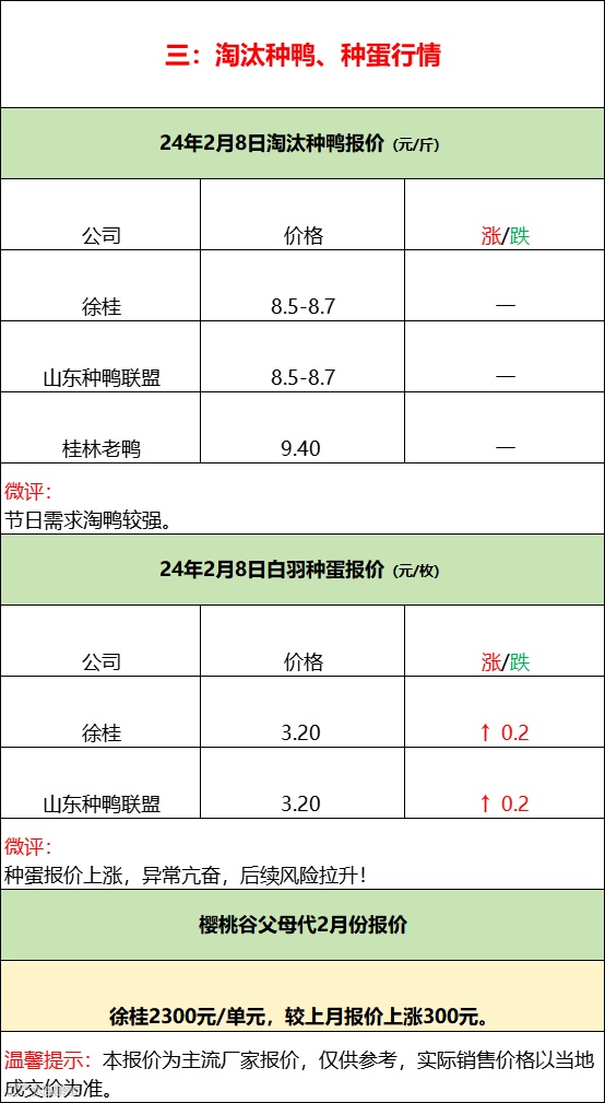 鸭苗亢奋,连续报涨,中下游承压。临近春节,鸭苗拉价实际代表性缺乏市场真实验证。