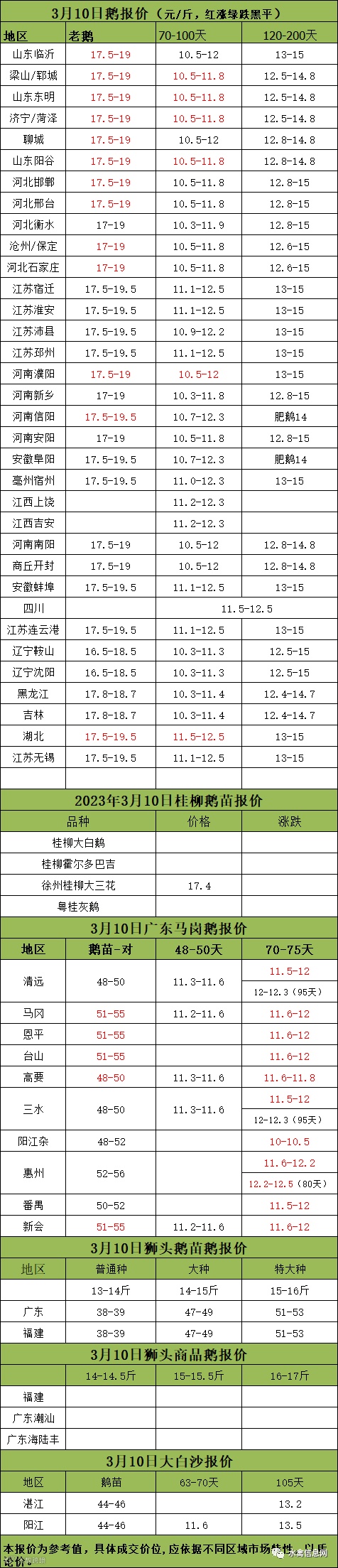 2023年3月10日各品种鹅苗价格