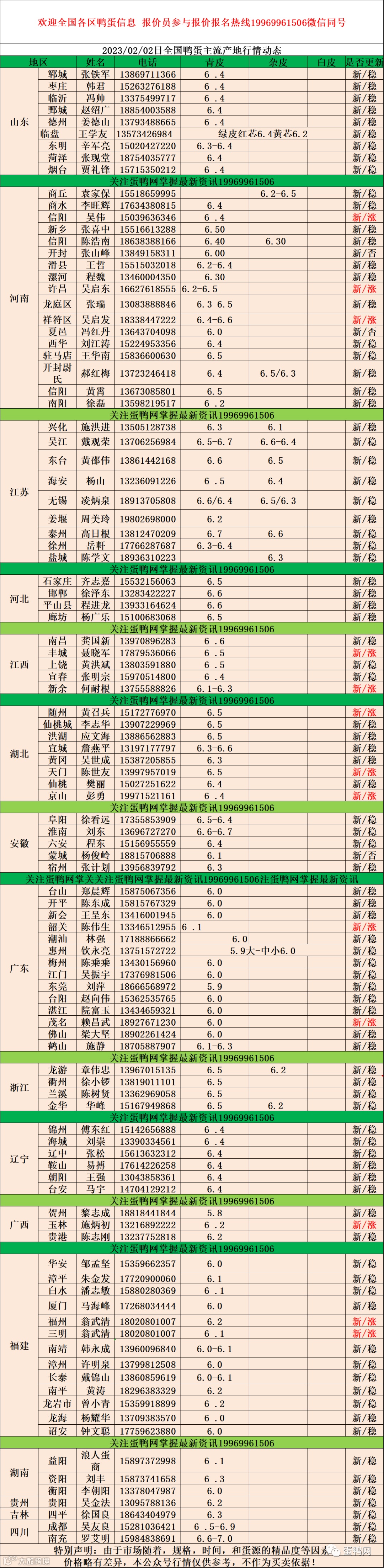 2023年02月02日:初产至10个头5.9元,10个头至9个头6.0元,9个头至8个头6.1元,8个头至7.5个头6.2,7.5个头至大蛋6.4元。