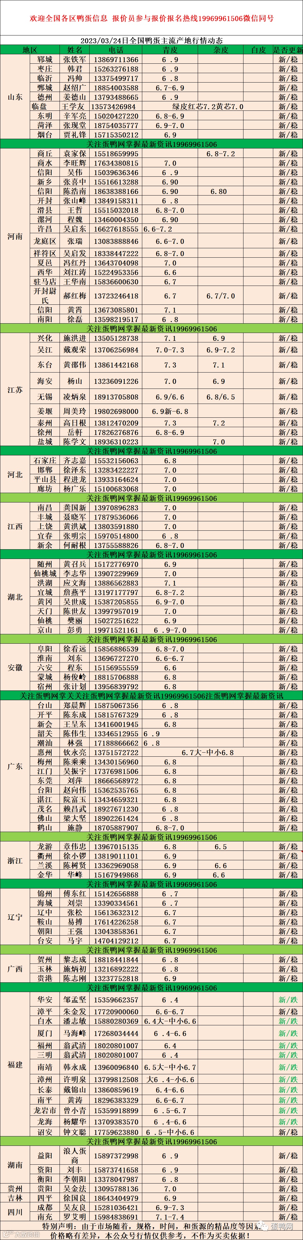2023年3月24日鸭蛋报价