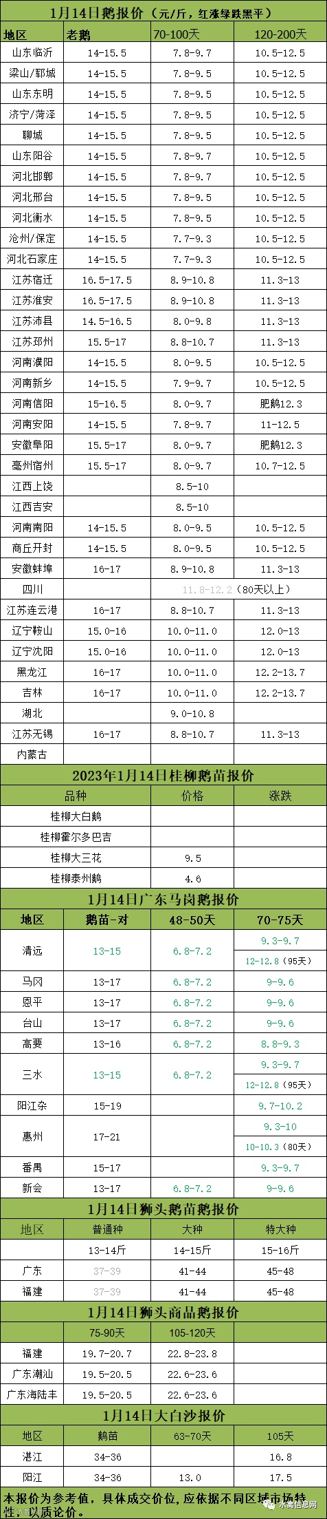 2023年1月14日鹅种蛋价格(元/枚)部分停报