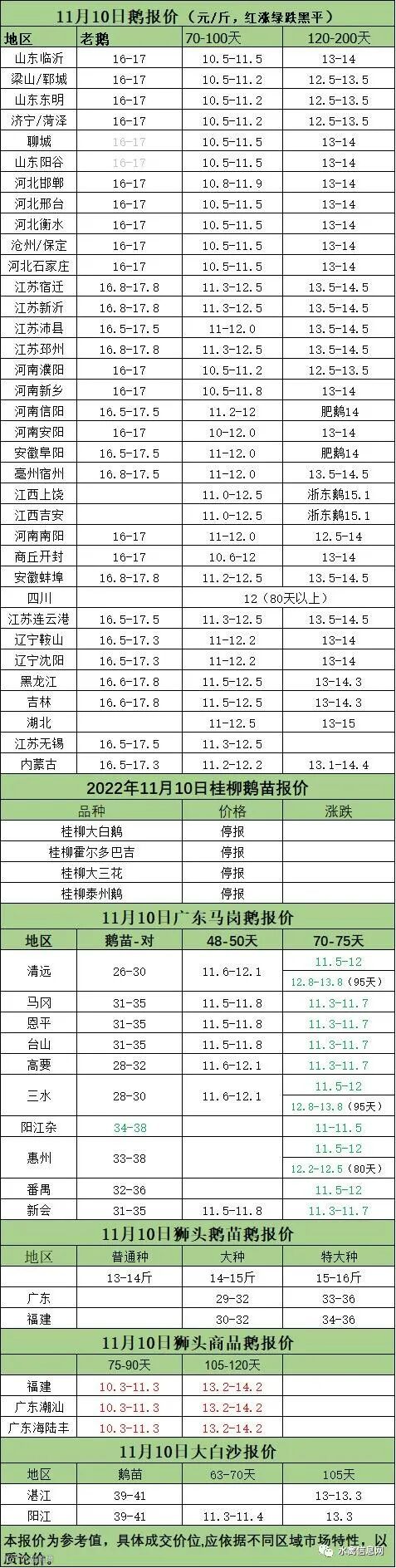2022年11月10日鹅种蛋价格(元/枚)部分停报