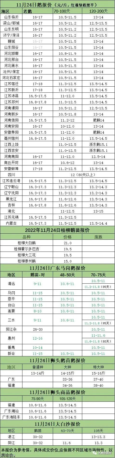2022年11月24日各品种鹅苗价格
