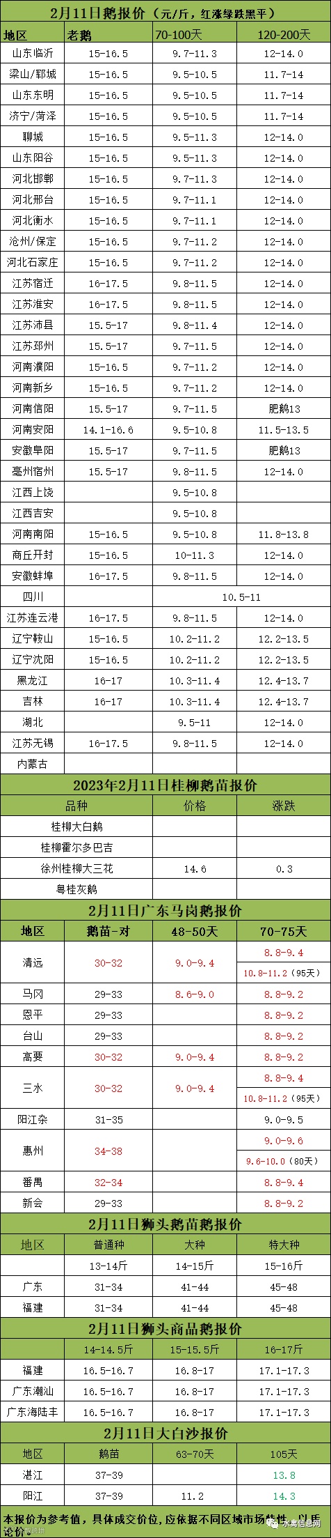2023年2月11日各品种鹅苗价格