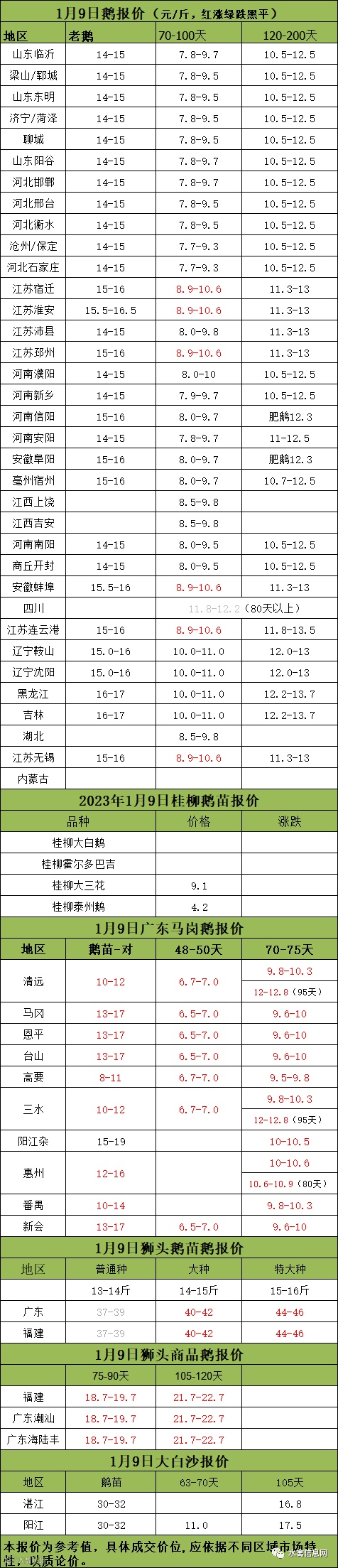 2023年1月09日鹅种蛋价格(元/枚)部分停报