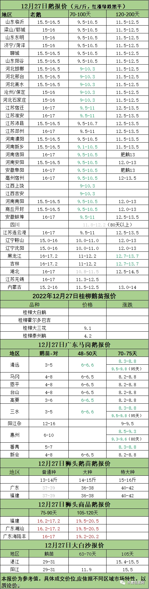 2022年12月27日鹅种蛋价格(元/枚)部分停报