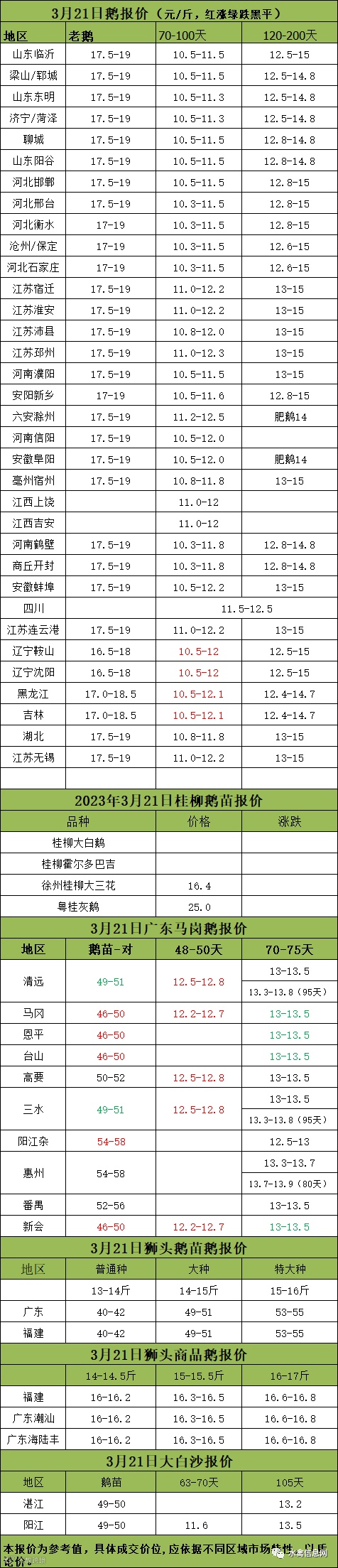 2023年3月21日鹅种蛋价格(元/枚)部分停报
