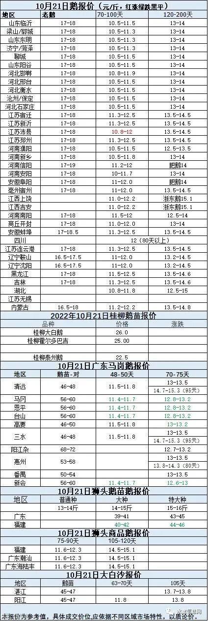 2022年10月21日鹅种蛋价格(元/枚)部分停报