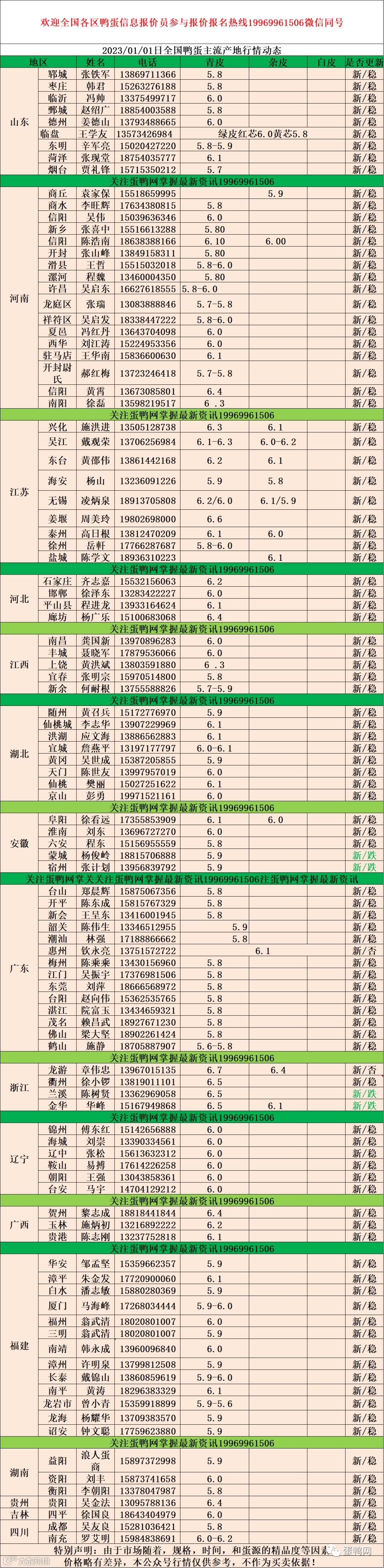2023年1月1日:初产至10个头5.5元,10个头至9个头5.6元,9个头至8个头5.7元,8个头至7.5个头5.8,7.5个头至大蛋6.0元。
