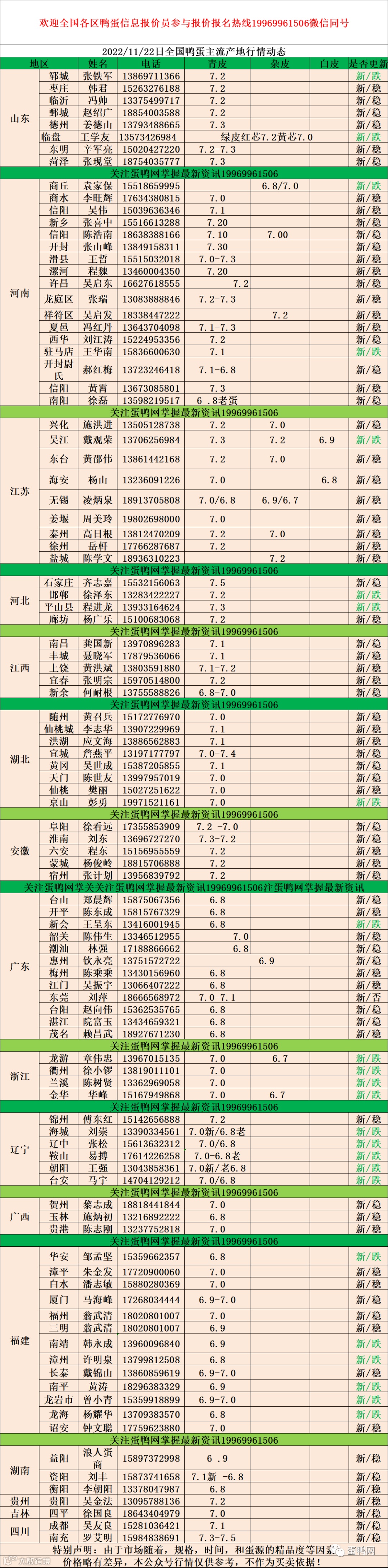 2022年11月22日鸭蛋报价