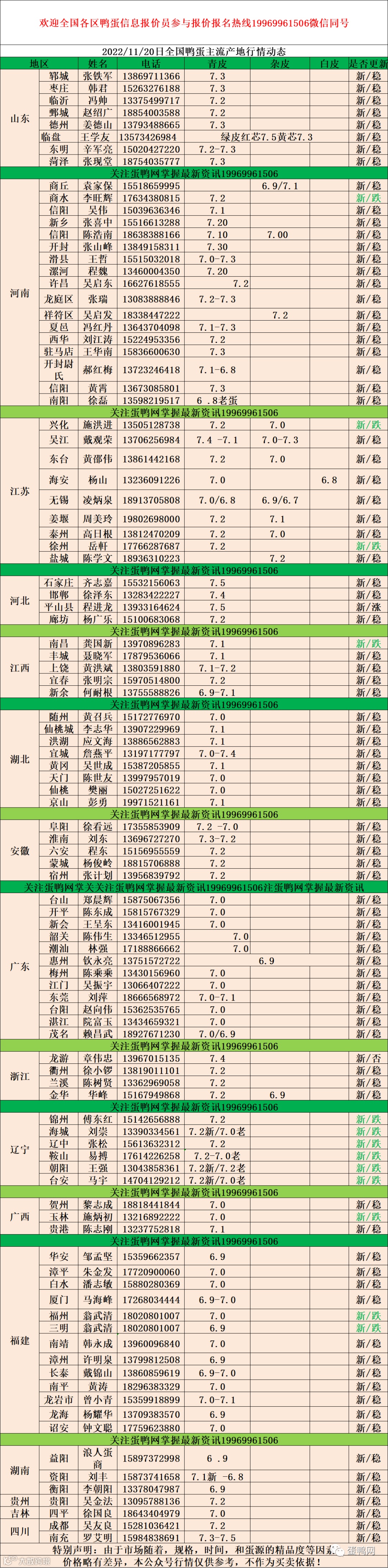2022年11月20日:初产至10个头6.4元,10个头至9个头6.8元,9个头至8个7.0元,8个头至大蛋7.2元。