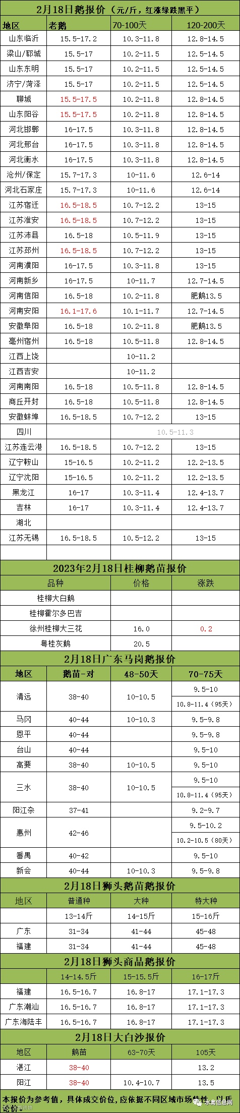 2023年2月18日各品种鹅苗价格