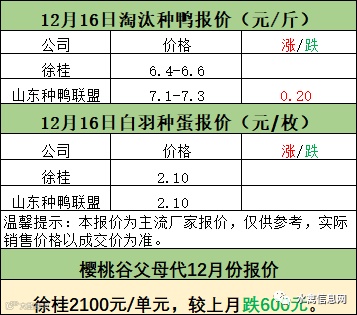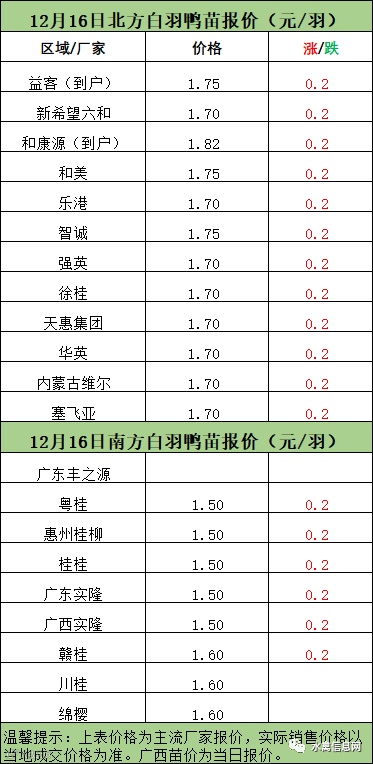 一、12月15日晚-12月16日白羽肉鸭报价;