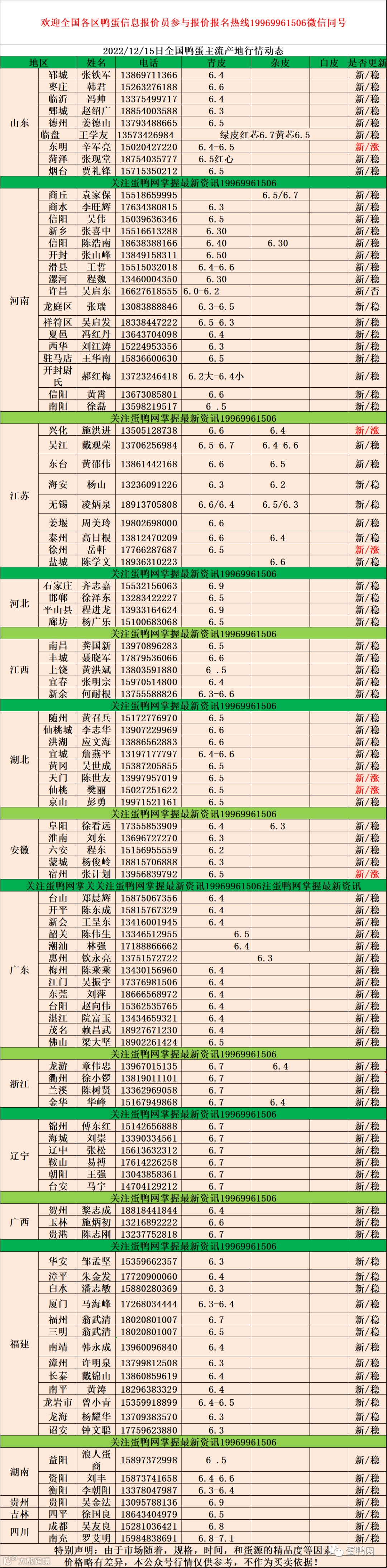 2022年12月15日:初产至10个头5.5元,10个头至9个头6.1元,9个头至8个头6.3元,8个头至7.5个头6.5,7.5个头至大蛋6.7元。
