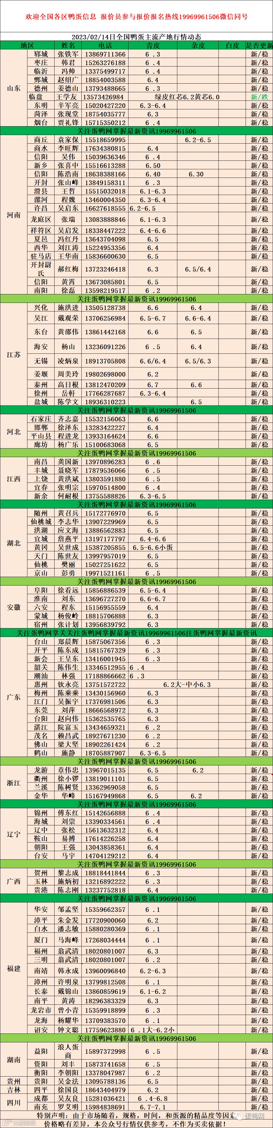 2023年02月14日:初产至10个头5.9元,10个头至9个头6.0元,9个头至8个头6.1元,8个头至7.5个头6.2,7.5个头至大蛋6.4元。