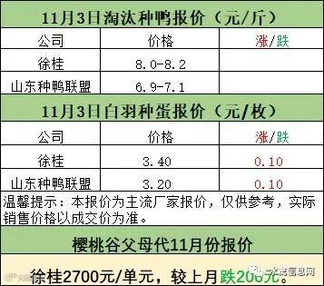一、11月2日晚-11月3日白羽肉鸭报价;