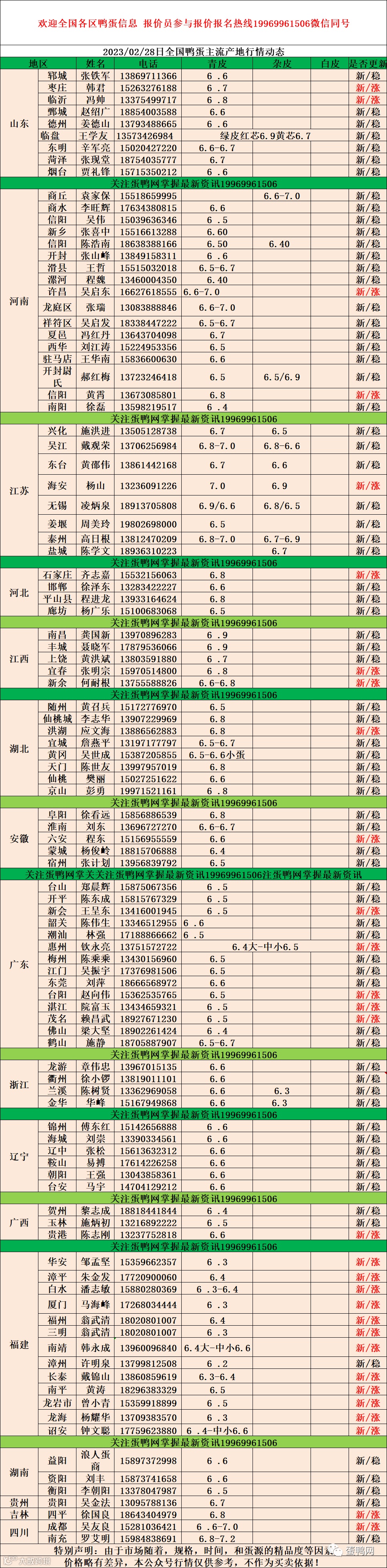 2023年2月28日鸭蛋报价