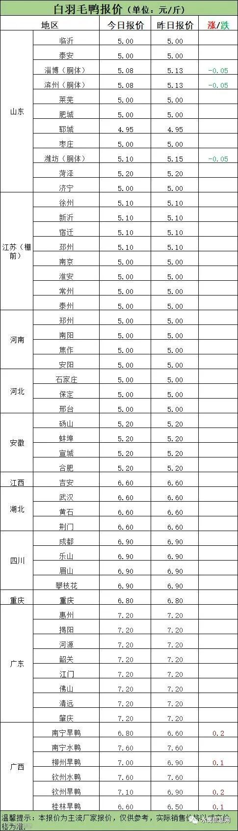 麻鸭苗报价稳定;半番鸭苗报价下滑。