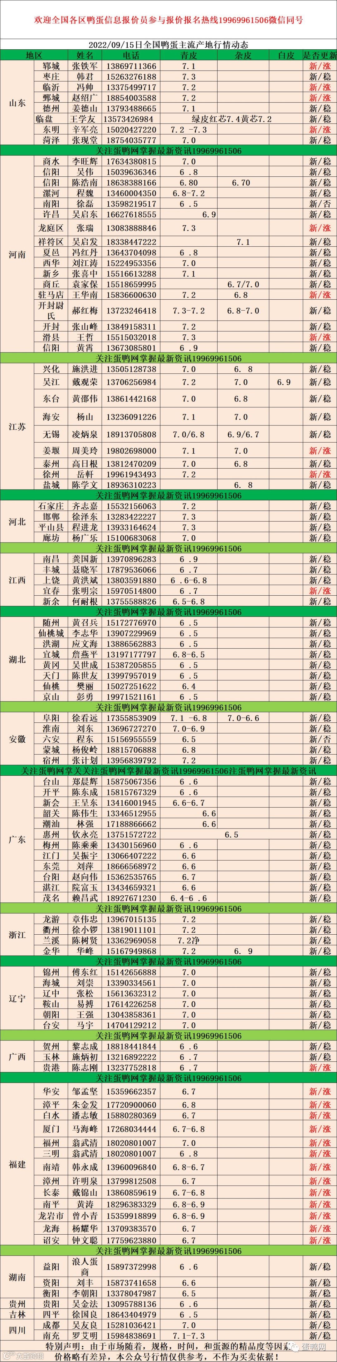 2022年9月15号鸭蛋报价