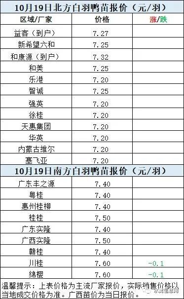 一、10月18日晚至10月19日 白羽肉鸭报价;