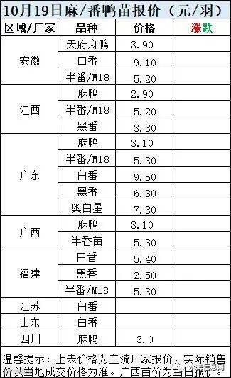 二、2022年10月19日麻鸭苗、半番鸭苗报价;