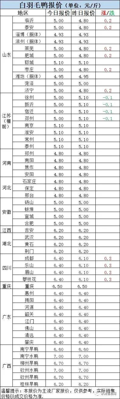 一、9月5日晚至9月6日 白羽肉鸭报价;