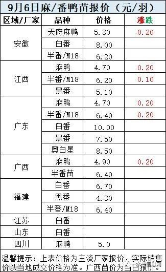 二、2022年9月6日麻鸭苗、半番鸭苗报价;