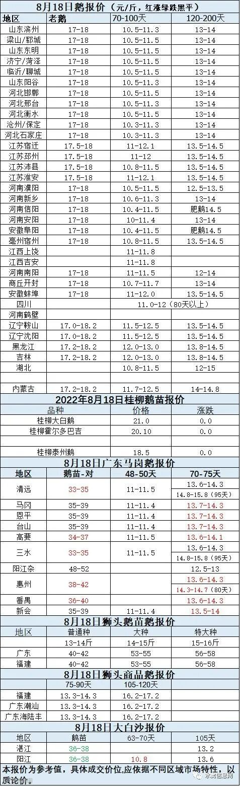 2022年8月18日鹅种蛋价格(元/枚)部分停报