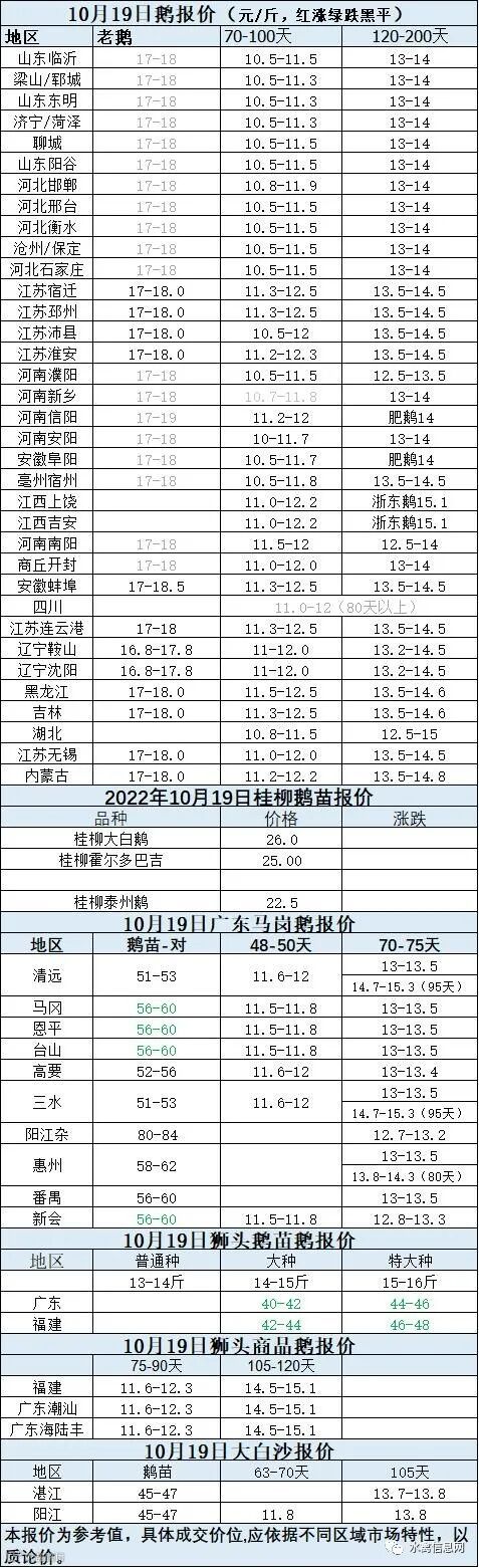 2022年10月19日鹅种蛋价格(元/枚)部分停报