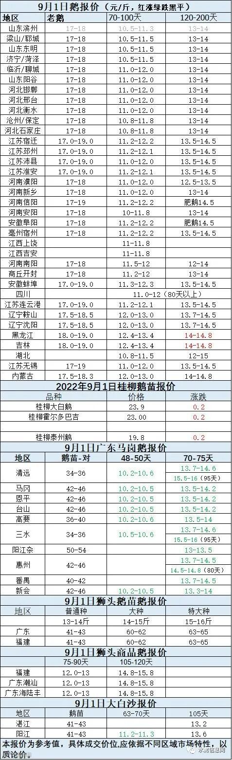 2022年9月01日各品种鹅苗价格