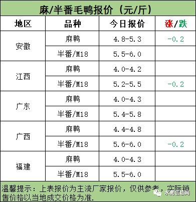 麻鸭苗报价弱稳;半番鸭苗报价平稳。