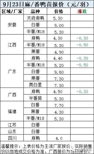 二、2022年9月23日麻鸭苗、半番鸭苗报价;