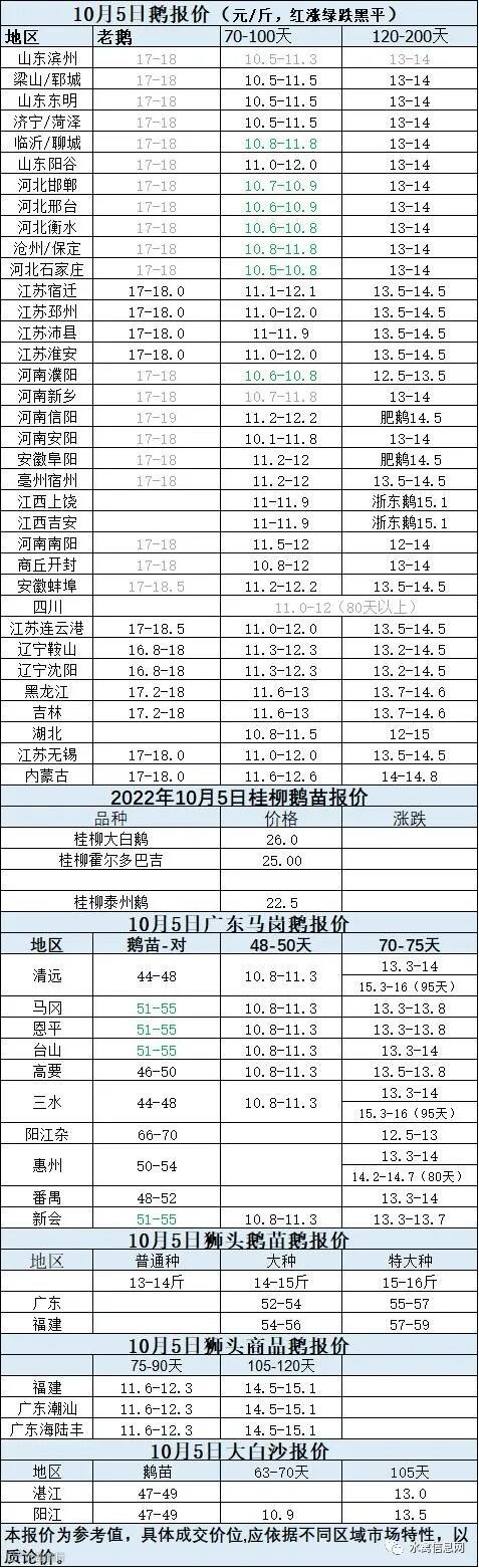 2022年10月5日鹅价快报 益牧堂水禽信息