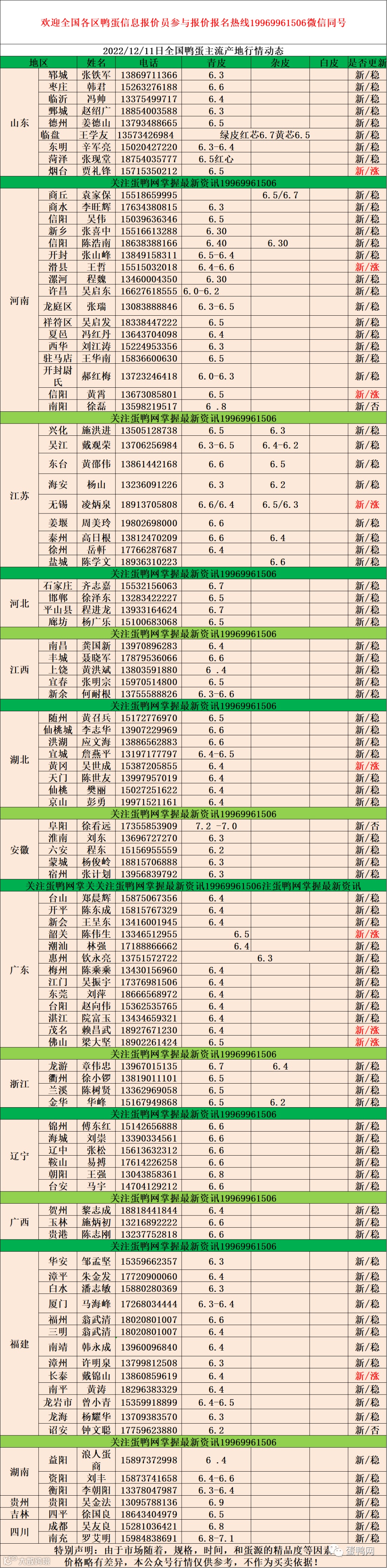 2022年12月11日鸭蛋报价