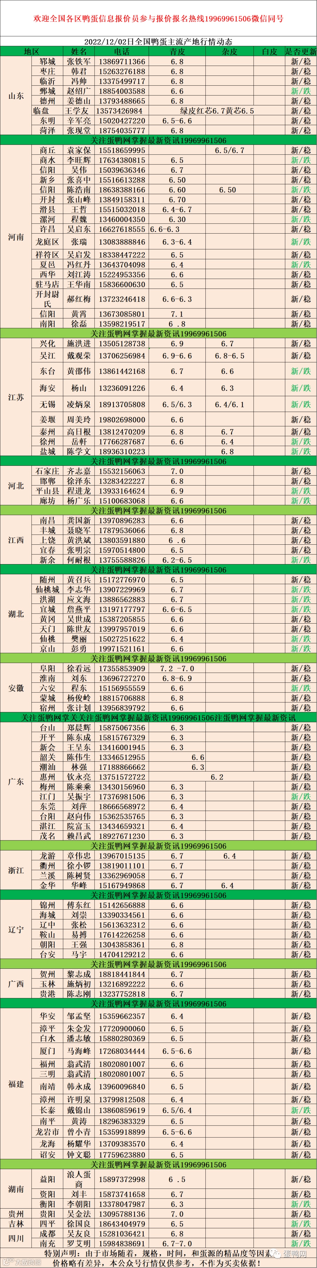 2022年12月2日:初产至10个头5.5元,10个头至9个头6.0元,9个头至8个头6.2元,8个头至7.5个头6.4,7.5个头至大蛋6.6元。