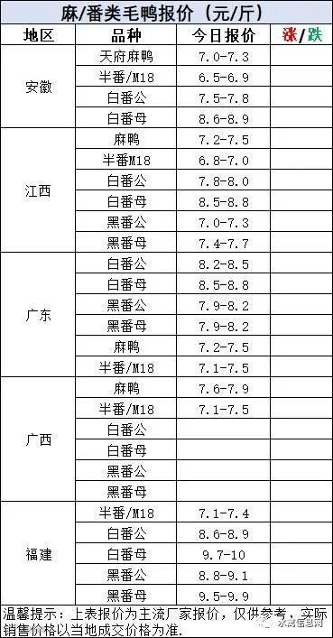 麻鸭苗报价以稳为主,局地上涨;半番鸭苗稳定;