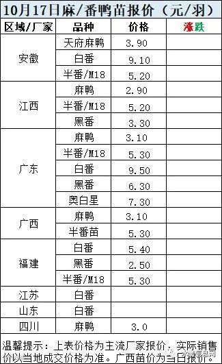 二、2022年10月17日麻鸭苗、半番鸭苗报价;