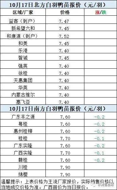 一、10月16日晚至10月17日 白羽肉鸭报价;