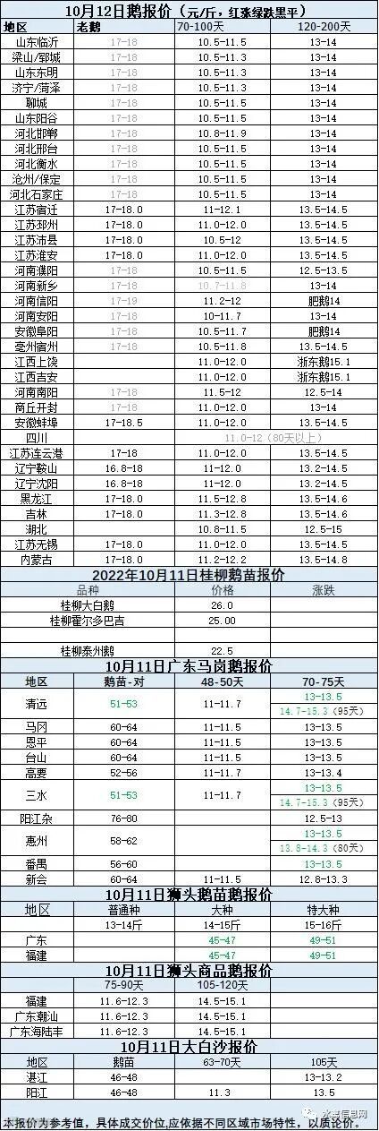 2022年10月12日鹅种蛋价格(元/枚)部分停报