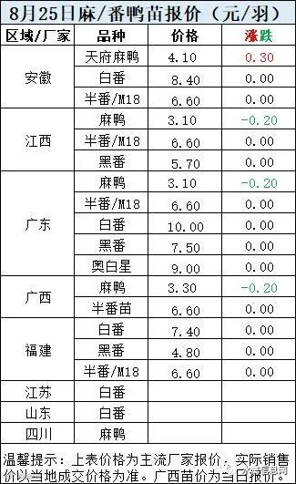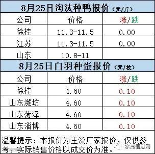 一、8月24日晚至8月25日 白羽肉鸭报价;