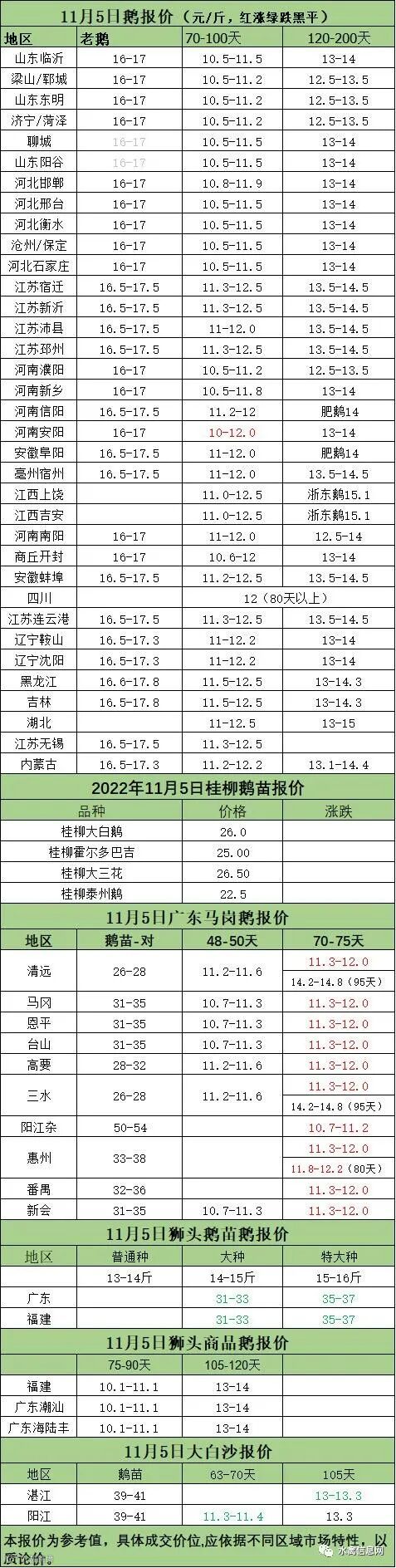 2022年11月05日鹅种蛋价格(元/枚)部分停报