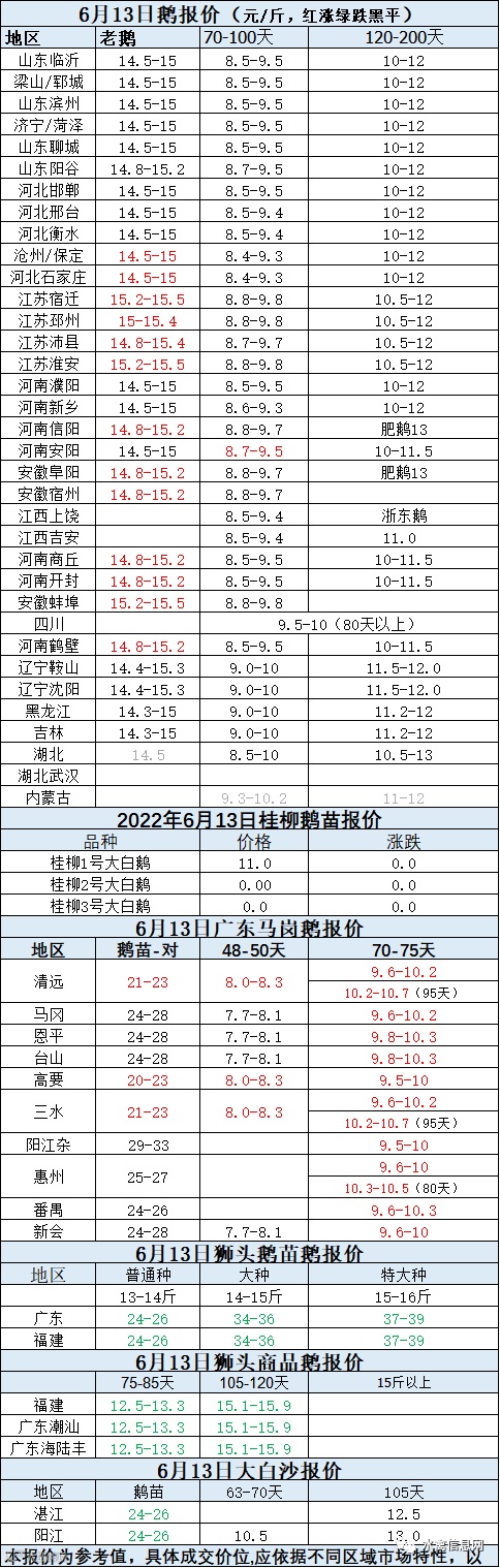 2022年6月13日各品种鹅苗价格
