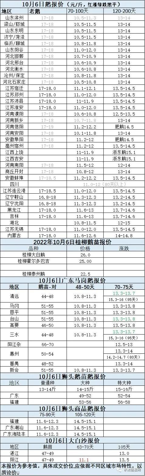2022年10月06日鹅种蛋价格(元/枚)部分停报