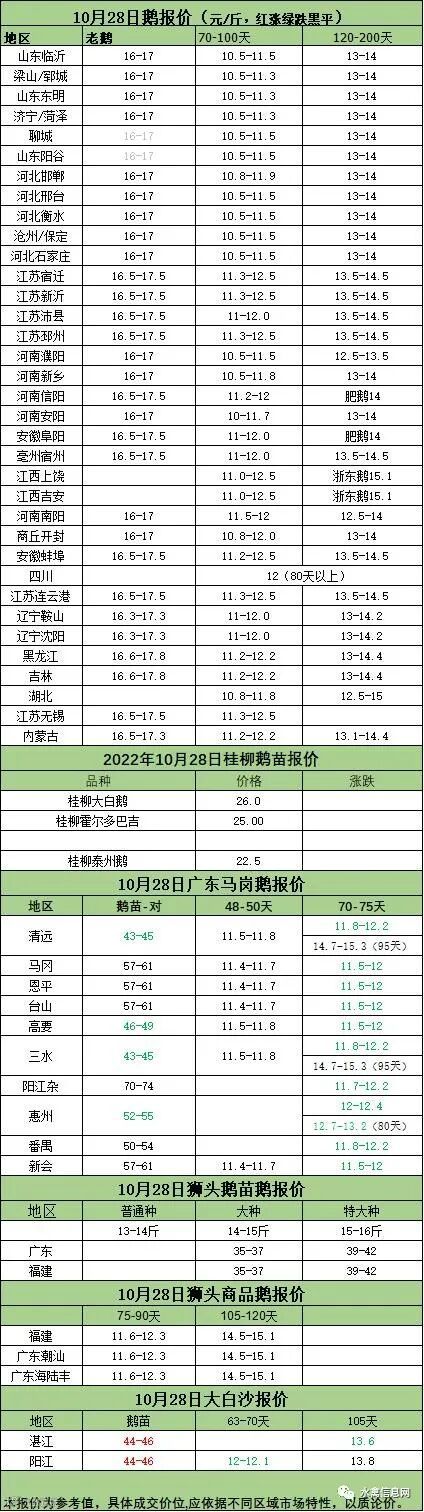 2022年10月28日各品种鹅苗价格